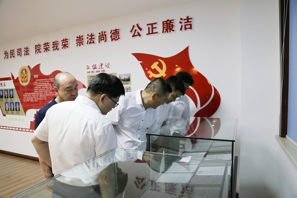 徐景新一行在佳铁法院党组书记、院长刘雨茎的陪同下参观了宪法墙、员额法官墙、诉讼服务中心、审判法庭等场所,并就加强府院联动、助力法治政府建设、实质性化解行政争议等问题进行座谈。