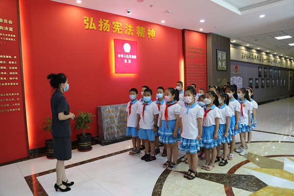 “宪法精神是什么?”“国家宪法日是哪天?”在讲解员的引领下,同学们参观宪法墙、员额法官墙,学习法律知识,对法官职责充满好奇。