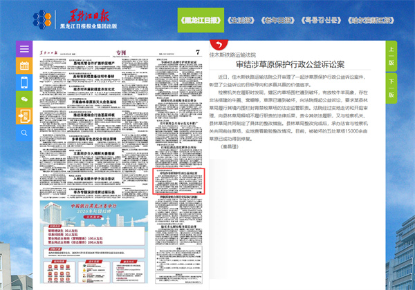 近日,佳木斯铁路运输法院公开审理了一起涉草原保护行政公益诉讼案件,彰显了公益诉讼的目标导向和多赢共赢的价值追求。