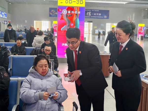 为深入弘扬宪法精神,让法律知识走进群众生活,近日,佳铁法院组织青年干警开展“宪法宣传进车站”主题活动,为过往旅客送上“法治出行指南”。